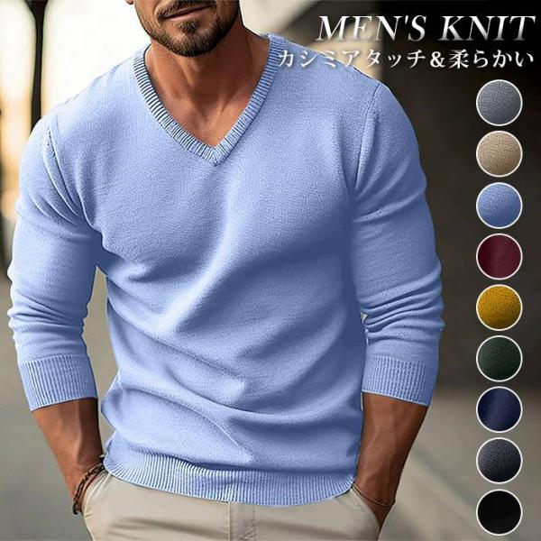 ニット メンズ セーター ニットセーター ハイネック 無地 カシミアタッチ