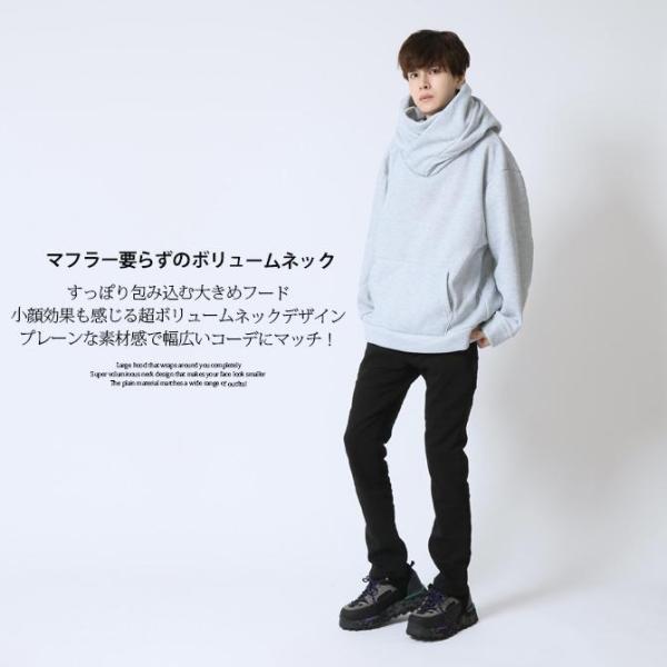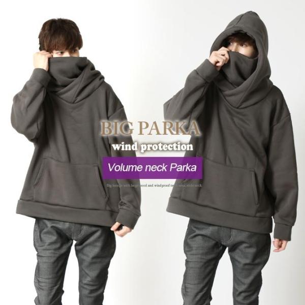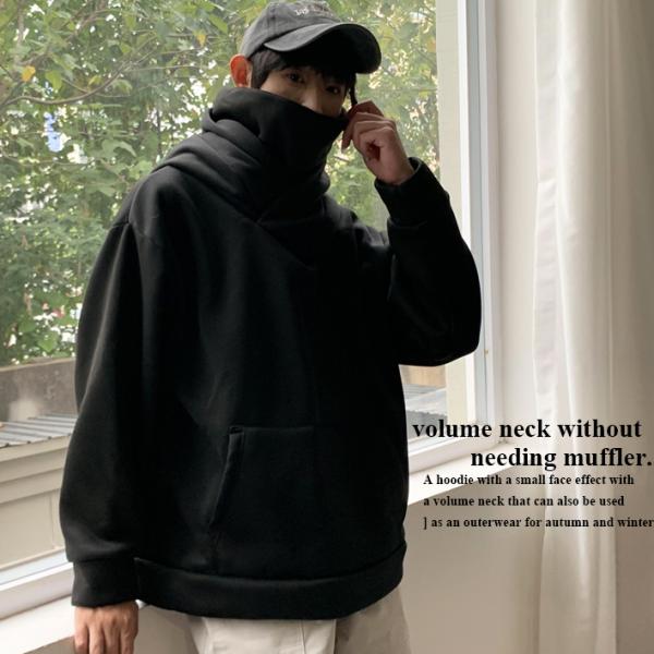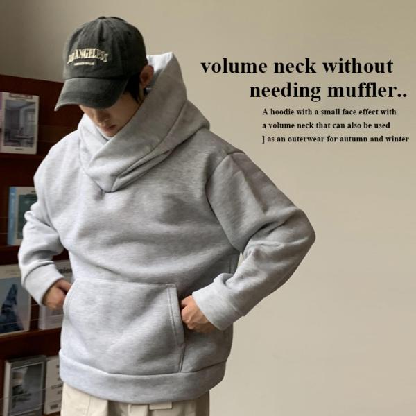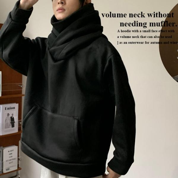 暖か 裏起毛 パーカー メンズ ボリュームネック ビッグフード プルパーカー オーバーサイズ プルオーバー ネックガード 2024秋冬/爆買