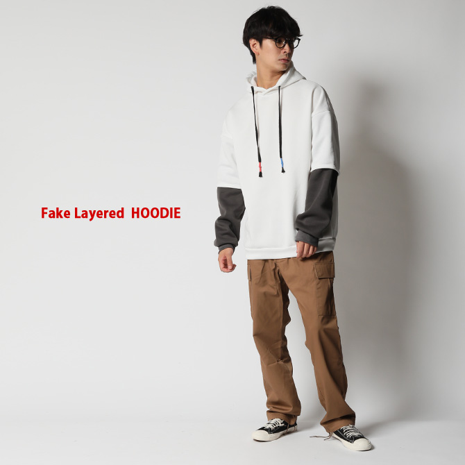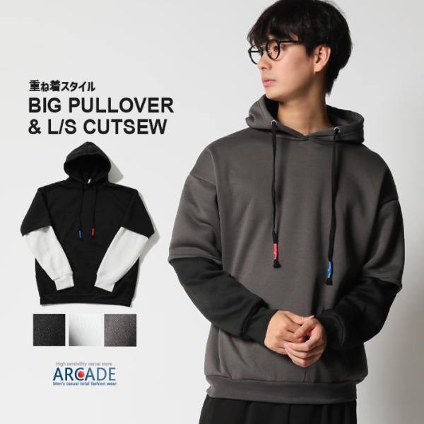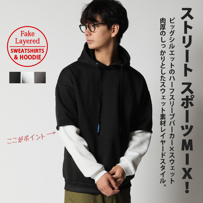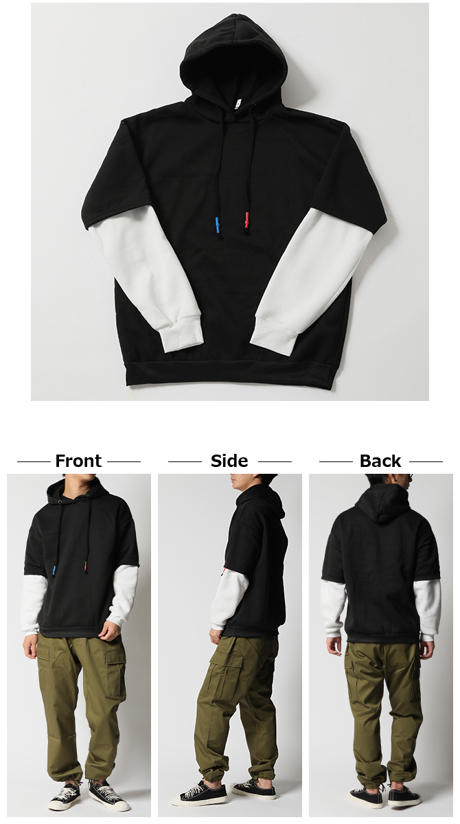 重ね着風 パーカー メンズ スウェット プルパーカー オーバーサイズ フェイクレイヤード プルオーバーパーカー 秋冬/爆買