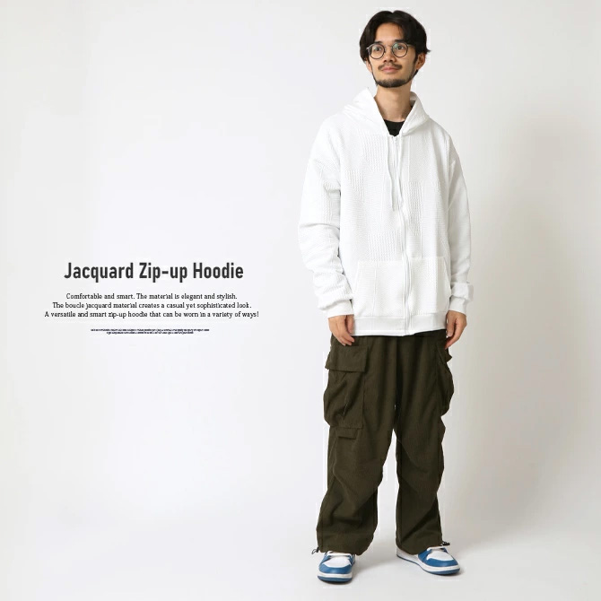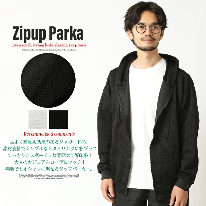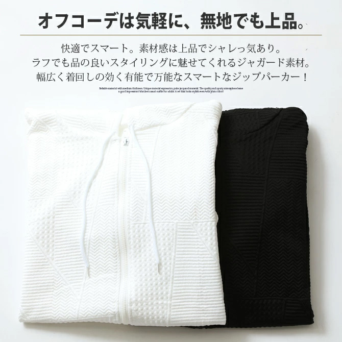 パーカー メンズ ジップアップパーカー 薄手ジャガード ゆったりシルエット S M L XL ブラック ホワイト パーカー トップス/爆買