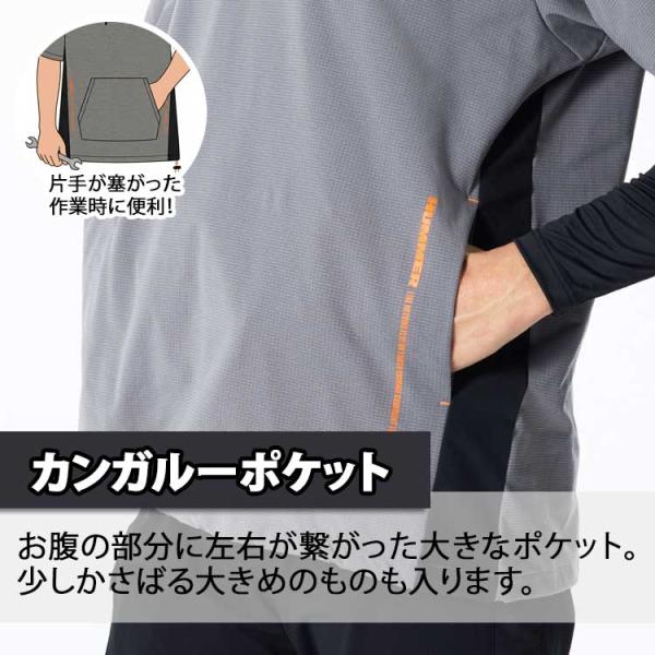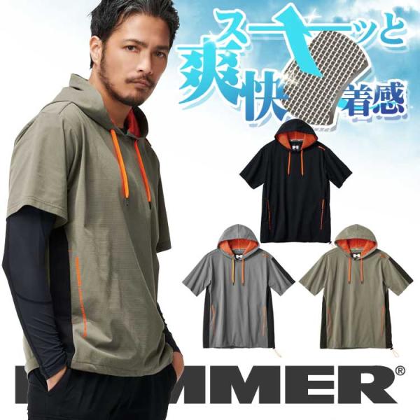 作業着 パーカー メンズ 半袖 夏用 ストレッチ 作業服 速乾 ハマー 38559 大きいサイズ 3L 5L 軽量 黒 カーキ チャコール 通気性 吸汗速乾 ゆったり HUMMER