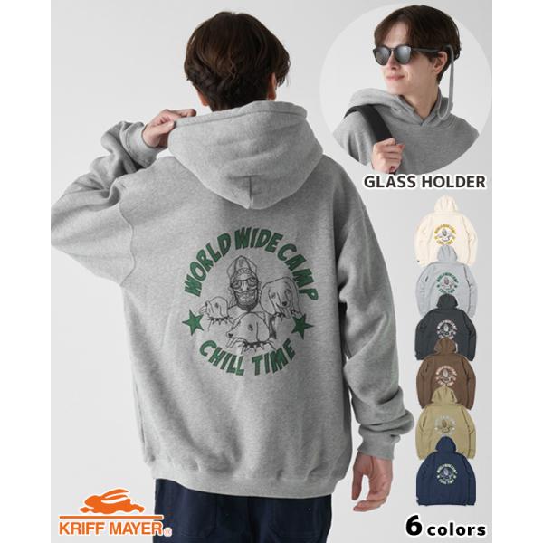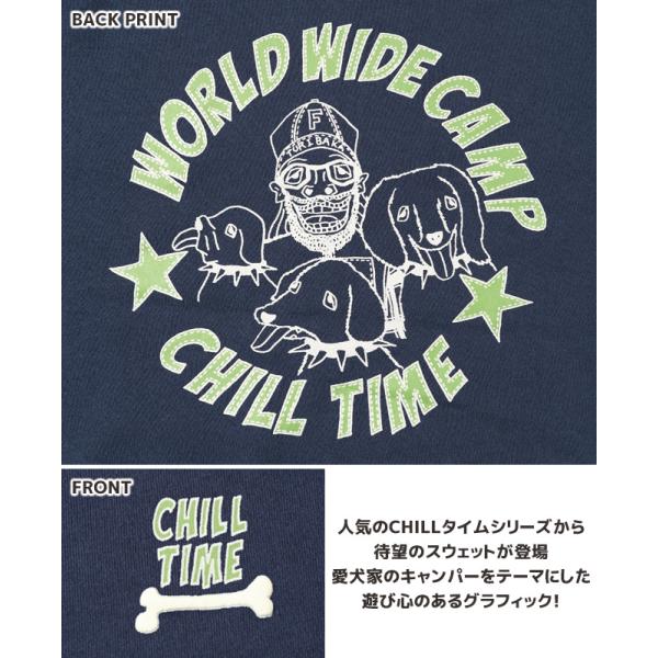 クリフメイヤー KRIFF MAYER メンズ ユニセックス 長袖 スウェット プルオーバー バックプリント チルタイム 裏起毛 パーカー (犬)