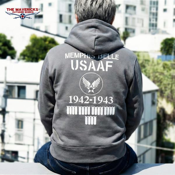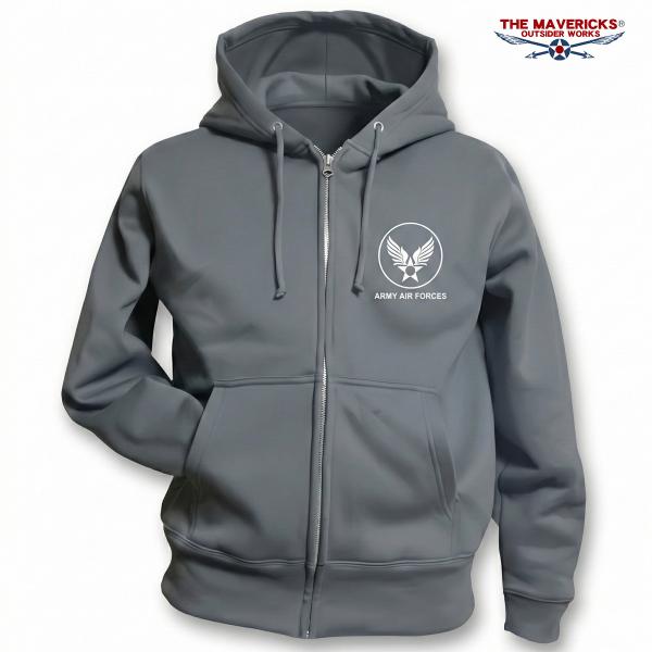 THE MAVERICKS ブランド ミリタリー メンズ ジップアップ スウェット パーカー 裏起毛 セメントグレー アーミー 爆弾エアフォース