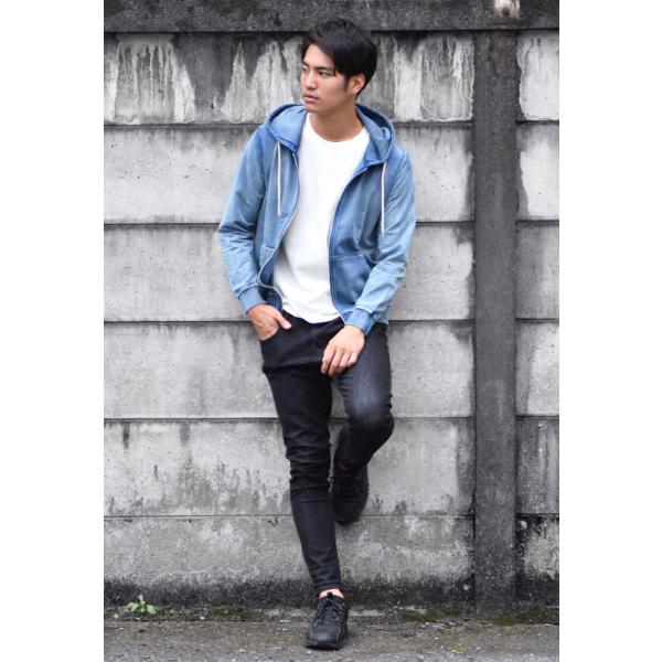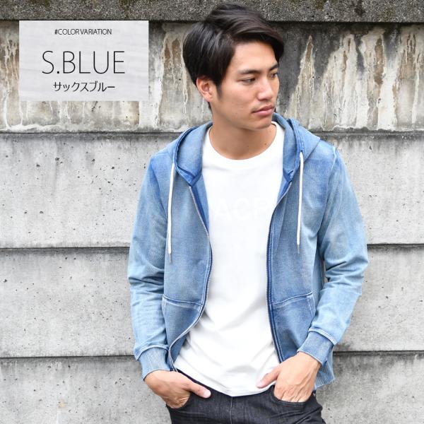 パーカー メンズ ジップパーカー スウェットセットアップ(別売) ユーズド加工 無地 ビター サーフ 春秋冬 青 紺 ブルー インディゴ M L XL LL 2L XXL 3L LLL