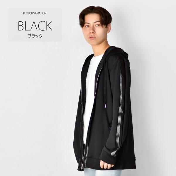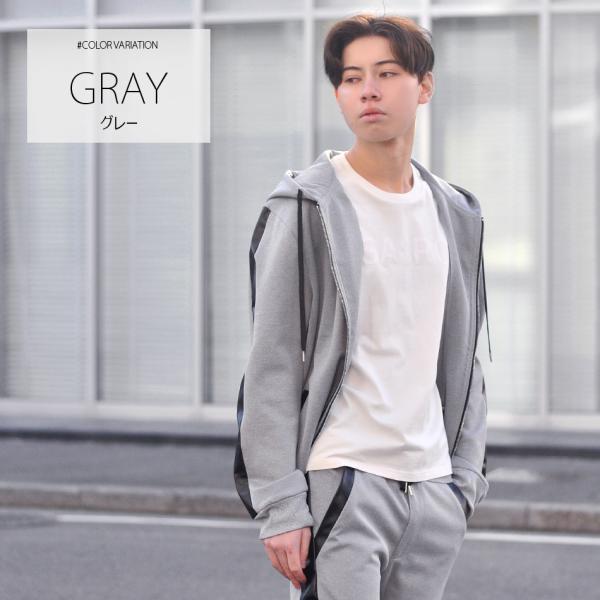 パーカー メンズ ジップパーカー 切替 フェイクレザー ライン ロゴ 春秋冬 ジムウエア モード系 サーフ系 ビター系 オラオラ系 グレー ブラック 黒 M L XL