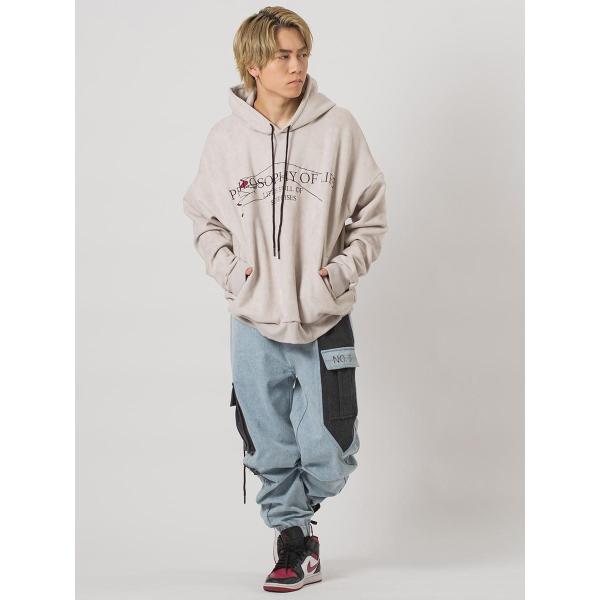 エコスエードレースアップビッグシルエットパーカー メンズ ビッグシルエット オーバーサイズ ストリート系 韓国ファッション 韓国系 RE730 セブンサーティー