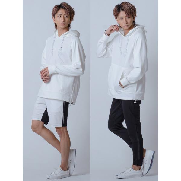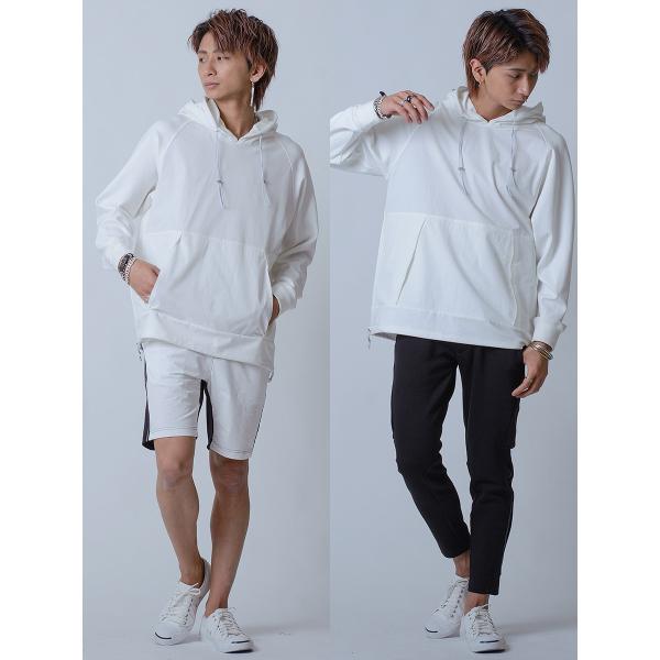 パーカー メンズ 春 秋 白 黒 プルオーバー ホワイト ブラック ベージュ M L XL ヒョウ ラグラン ダブルフード REGIEVO レジエボ