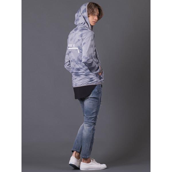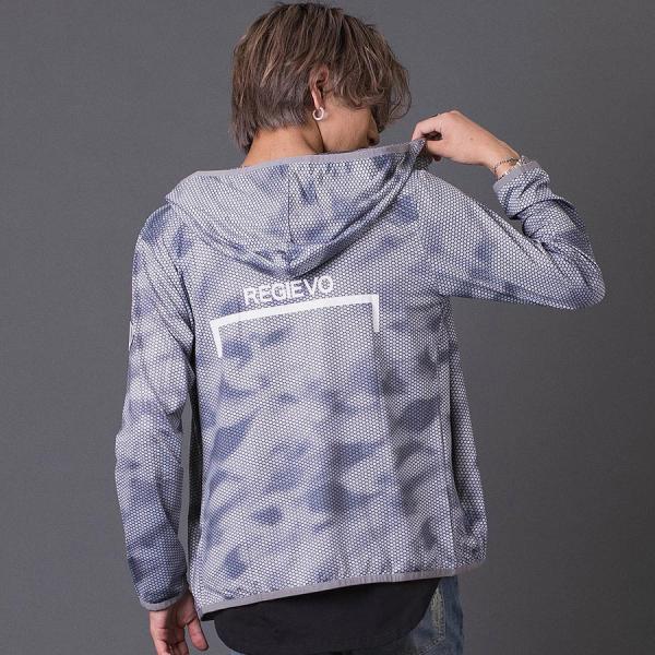 ハニカムプリントパーカー メンズ スポーティ 総柄 ワンポイント ロゴ グレー ブルー ネイビー 青 紺 M L XL REGIEVO レジエボ