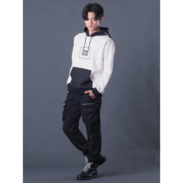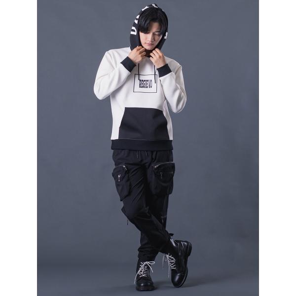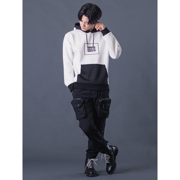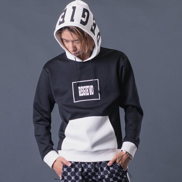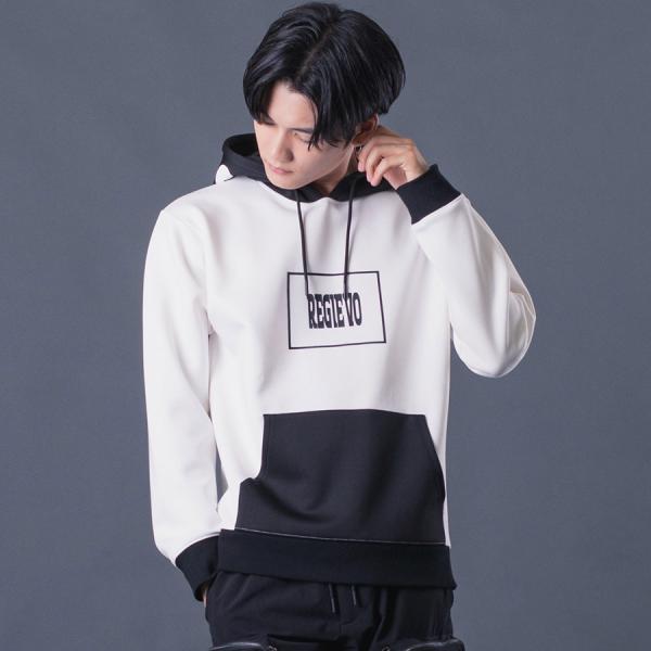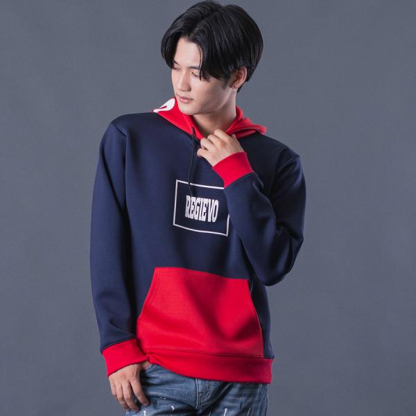 配色プルパーカー メンズ バイカラー 春 秋 冬 ストレッチ ブラック レッド ホワイト ネイビー 黒 赤 紺 白 M L XL REGIEVO レジエボ