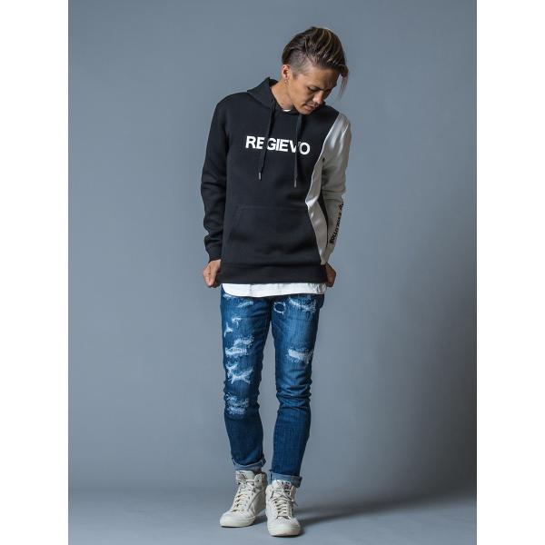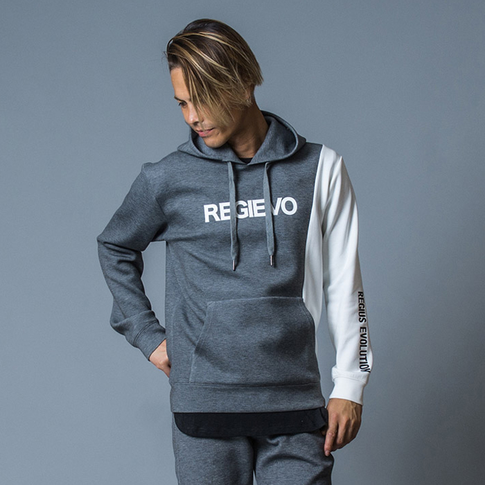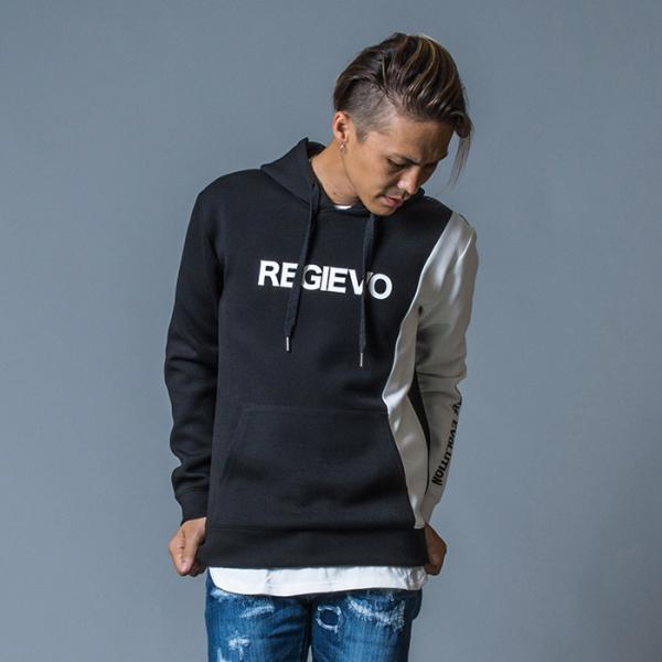 パーカー メンズ 春 秋 冬 黒 グレー ブラック S M L XL 2L LL プルパーカー プルオーバー プリント ロゴ ストレッチ REGIEVO レジエボ 75515