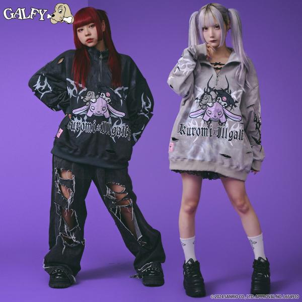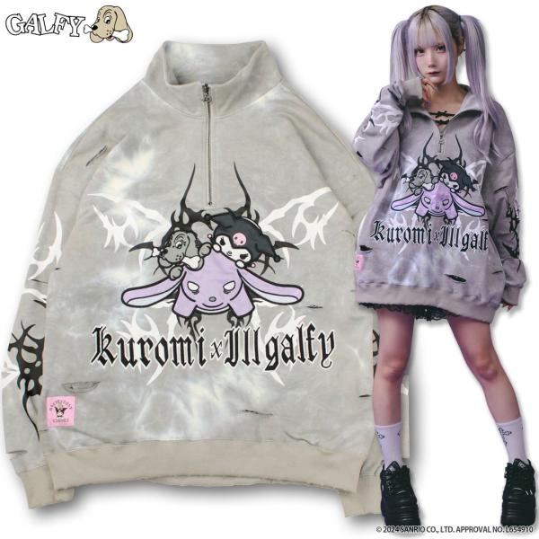 クロミ × ガルフィー コラボ イルガルフィームラ染めハーフZIP トレーナー クロミちゃん KUROMI GALFY サンリオ 144007 24AW