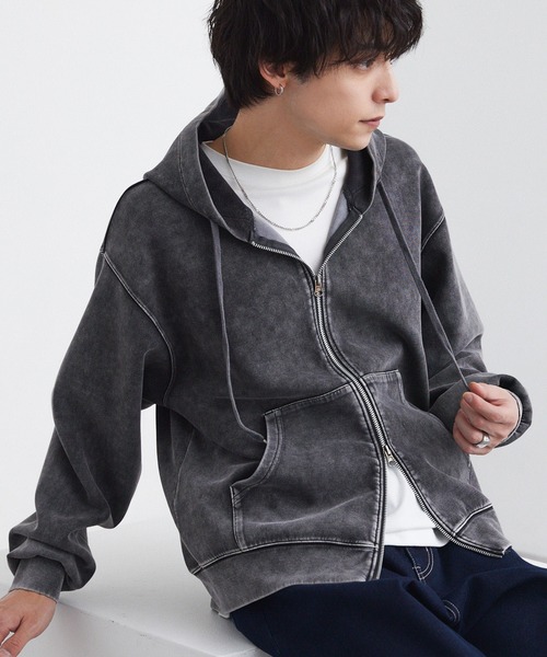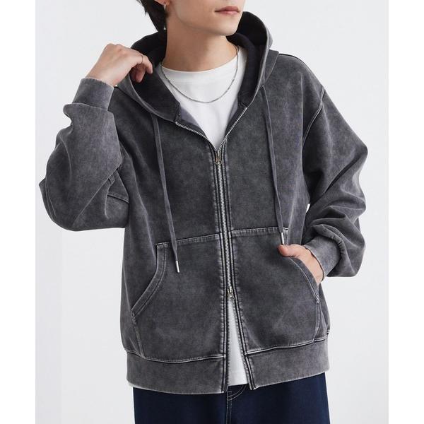 パーカー ヴィンテージライク ケミカルウォッシュ ショート丈 ダンボール ダブルジップパーカー メンズ レディース