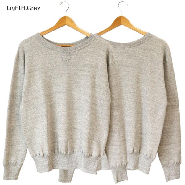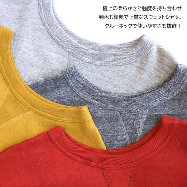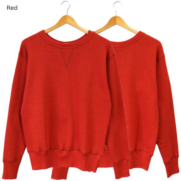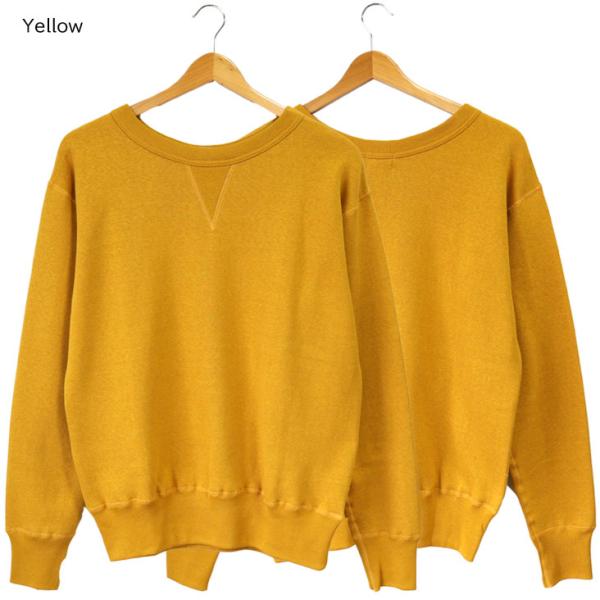 Denime ドゥニーム 4本針前Vクルーネックスウェット トレーナー 長袖 無地 シンプル コットン 綿100% 丈夫 上質 裏起毛 秋冬 レッド 赤 イエロー 黄 グレー
