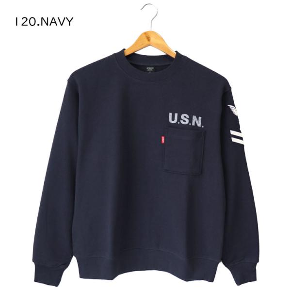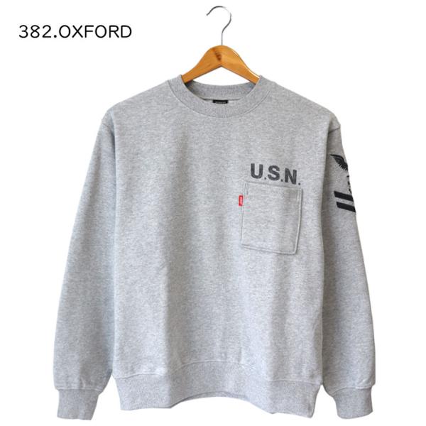 AVIREX アビレックス アヴィレックス トレーナー NAVAL CREWNECK SWEAT ネイバル クルーネック スウェット 裏毛 刺繍 プリント 綿 ホワイト ネイビー グレー