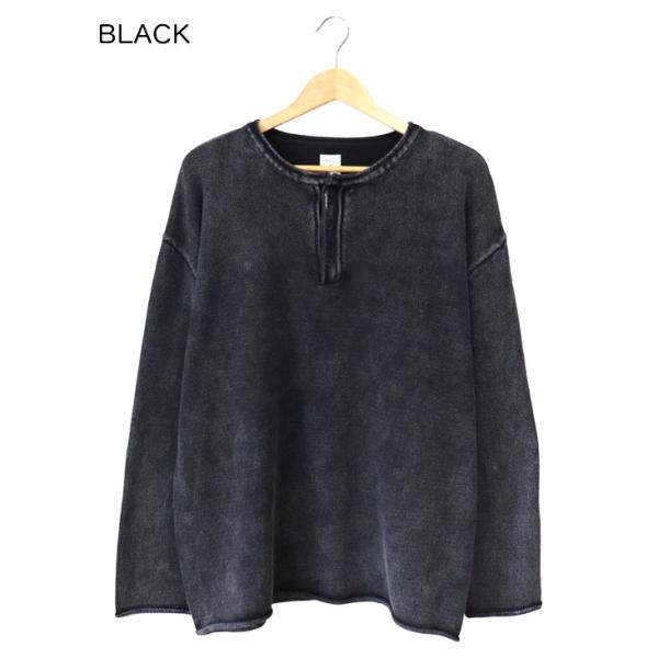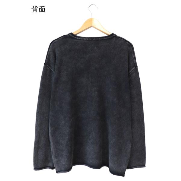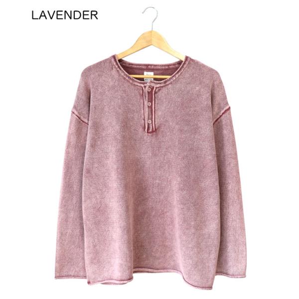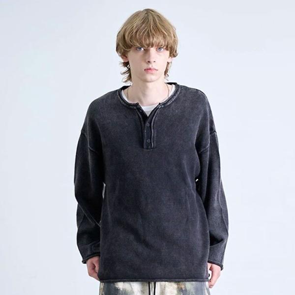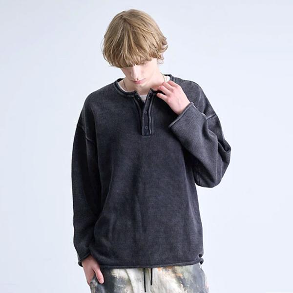 Revo. レヴォ ピグメント加工コットンニット ヘンリーネック クルーネックニット スプリングニット ヴィンテージ感 かっこいい ルーズ 長袖 メンズ レディース