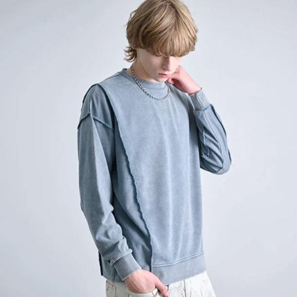 Revo. レヴォ ケミカルウォッシュ切替スウェット CVC 裏毛 クルーネックスウェット トレーナー ツギハギ ヴィンテージ感 かっこいい 古着リメイク風 ルーズ 長袖