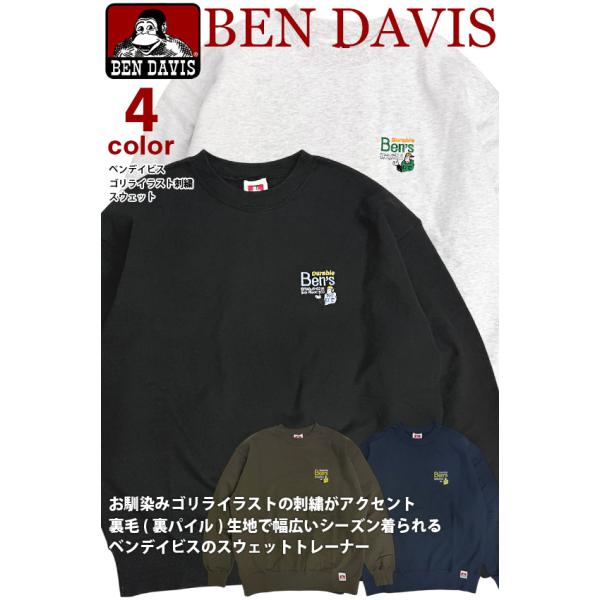 BEN DAVIS スウェット ベンデイビス ゴリラ 刺繍 トレーナー メンズ ベンデイヴィス 裏毛 スエット ユニセックス BEN-2143