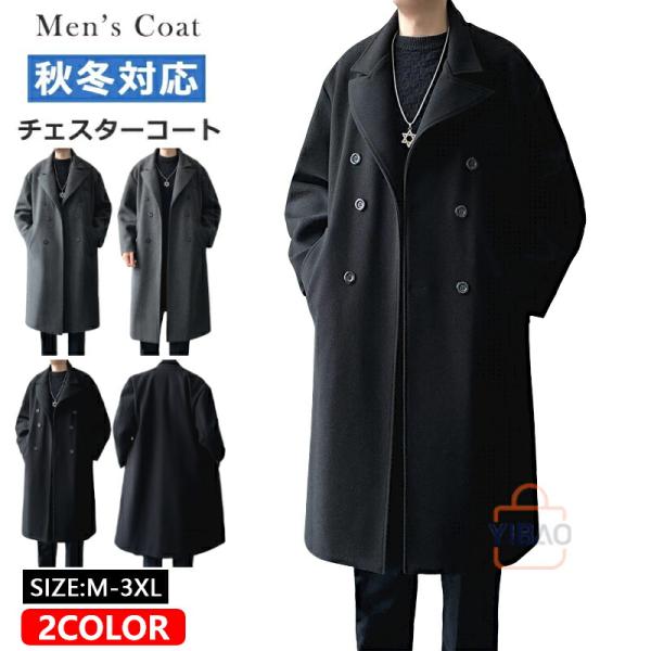 ロングコート ダブルチェスターコート メンズ ビジネスコート メルトン トレンチコート スプリングコート ダブルコート 冬コート 防寒コート ブルゾン アウター