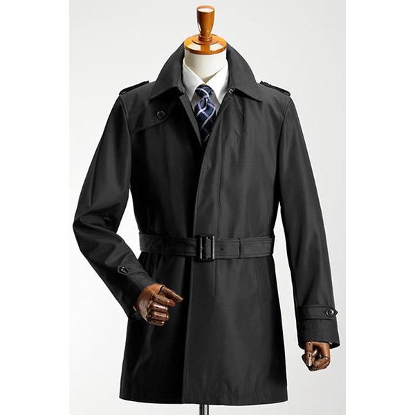 トレンチコート シングル ビジネスコート メンズ スーツコート 半キルティング裏地 ボンディング素材 コート スリムコート 黒