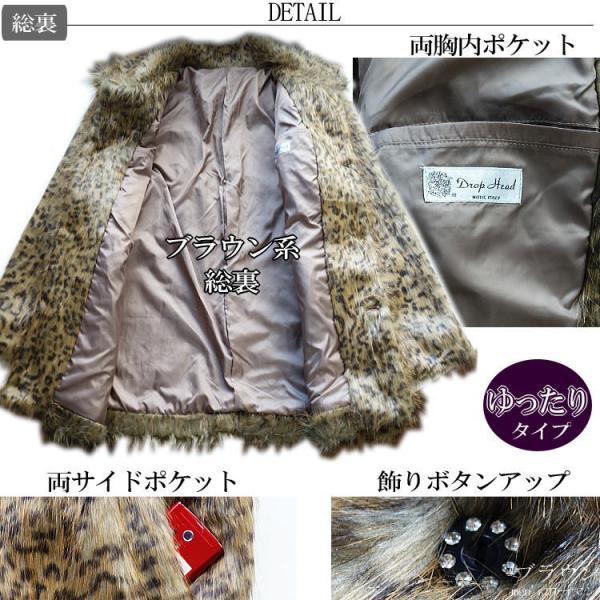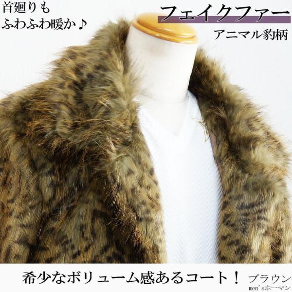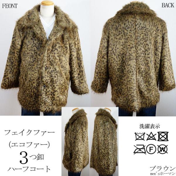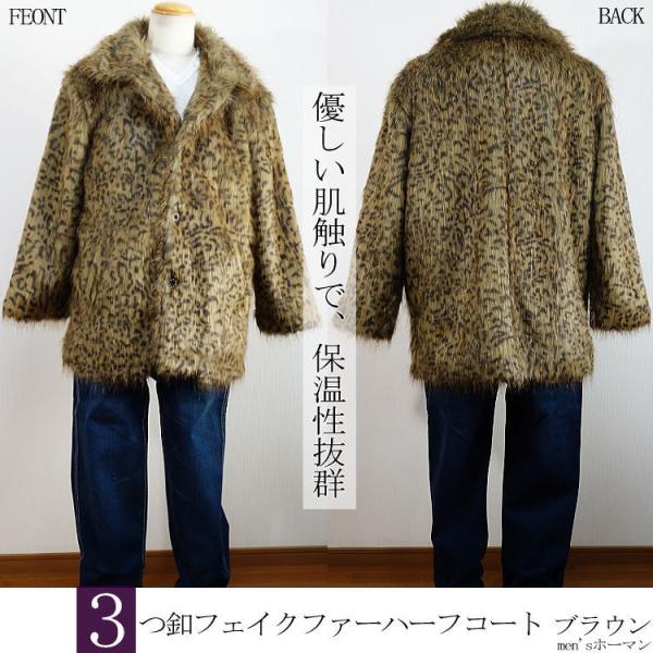2017年冬物新作 ビッグ有 DropHead/ドロップヘッド フェイクファー エコファー スーツ対応 3釦 豹ヒョウ柄 ブラウン茶 ハーフコート M/L/LL(M〜3L対応) A6700