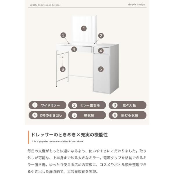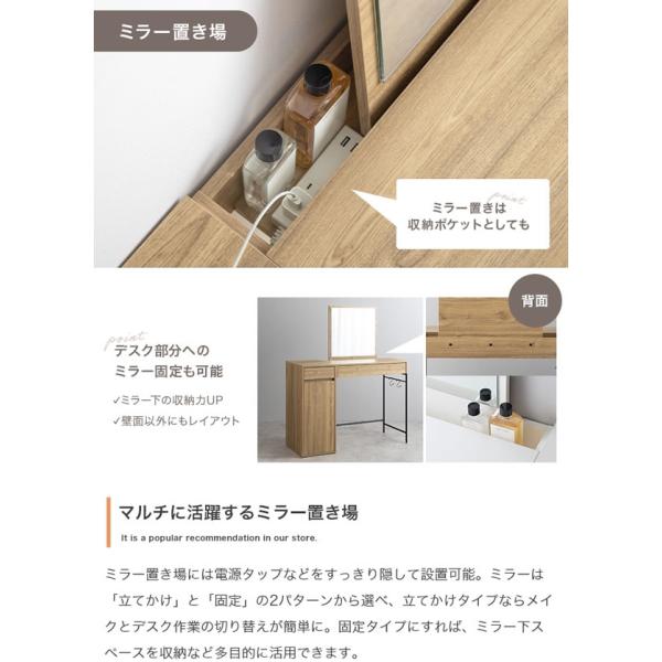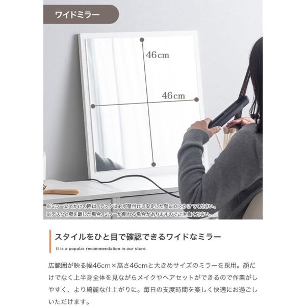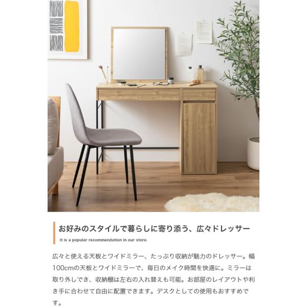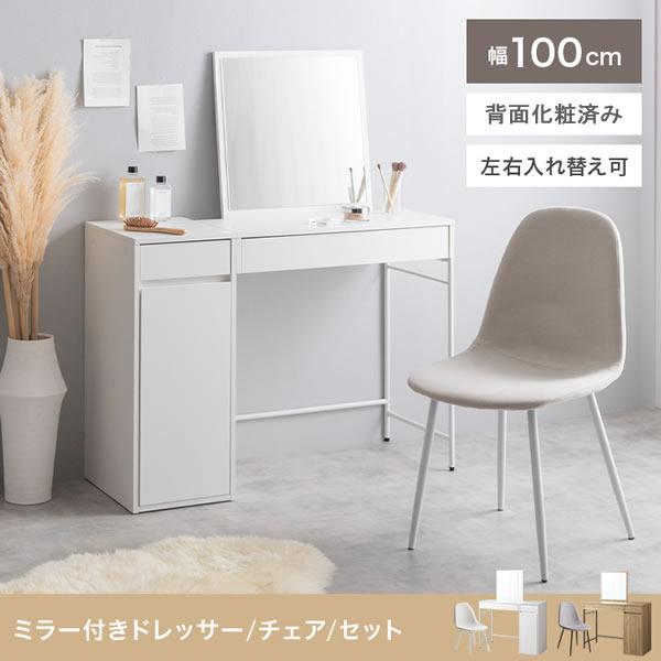ドレッサー ミラー付き 幅100cm 収納 大容量 デスク兼用 ワイドミラー メラミン天板 組替可 チェア 単品 セット 引き出し2杯