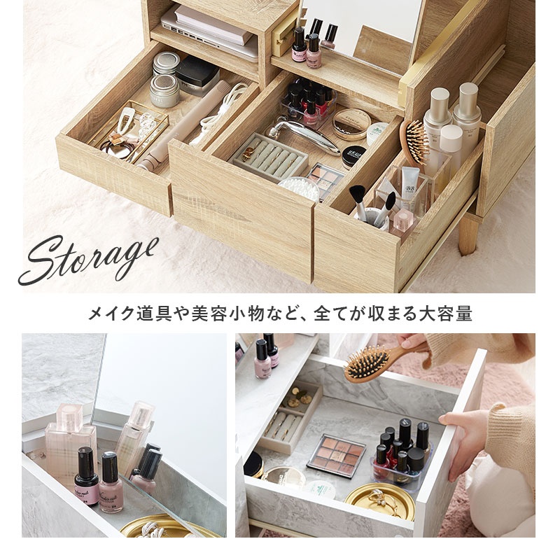 ドレッサー テーブル ドレッサーテーブル 白 おしゃれ 収納 大容量 コンパクト 75cm 子供 ローテーブル デスク 机 コスメテーブル テレワーク リリオ