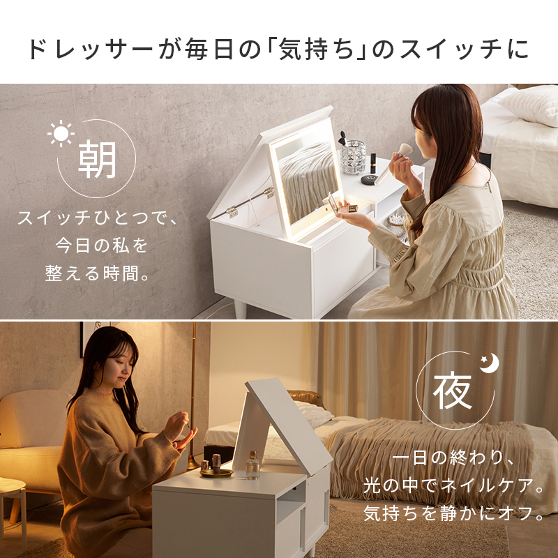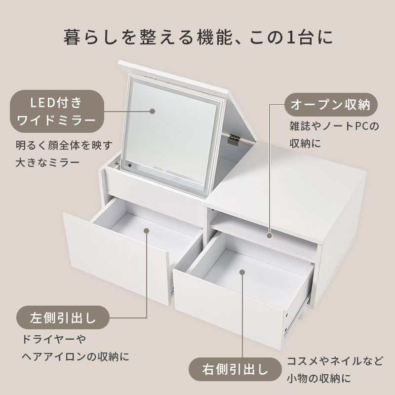 ドレッサー テーブル ドレッサーテーブル LEDライト付き 白 おしゃれ 収納 大容量 コンパクト 80cm ローテーブル デスク 机 コスメテーブル エルル