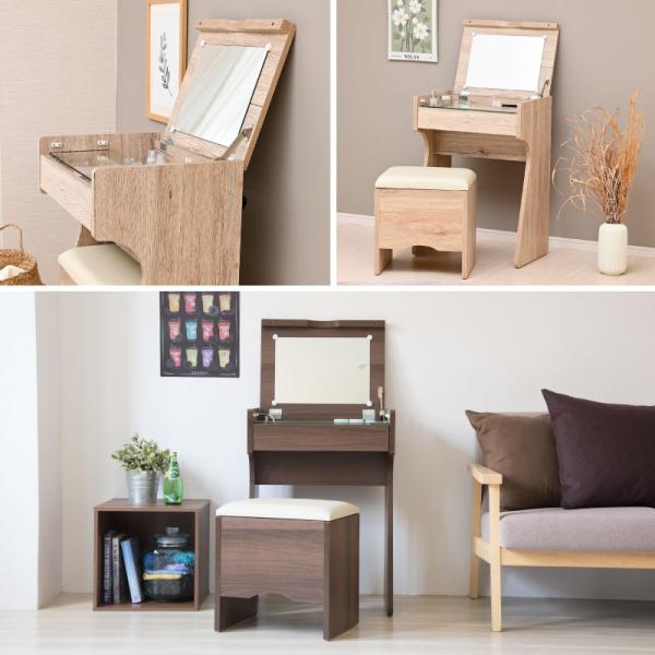 ドレッサー おしゃれ 北欧 コンパクト テーブル 収納 スツール付き 安い 化粧台 コンセント付き