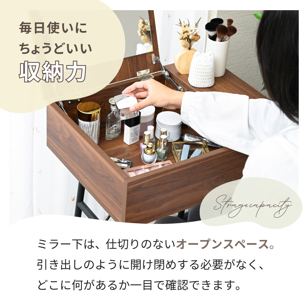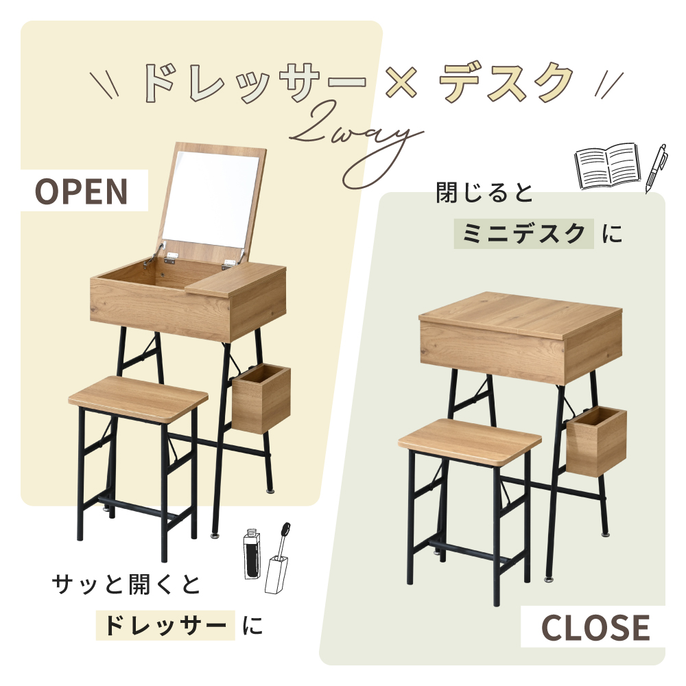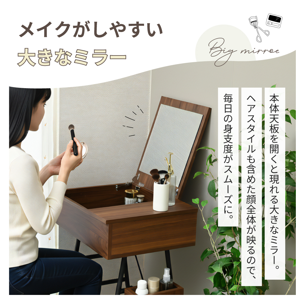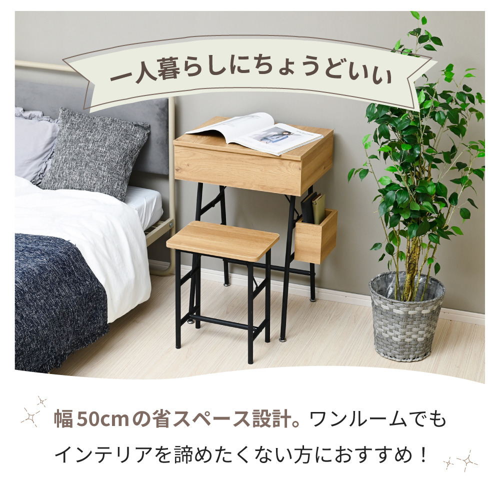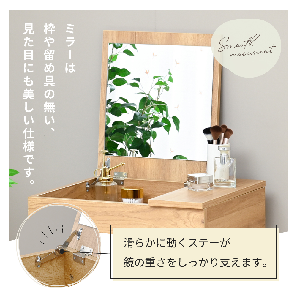 LUMOD コンパクトドレッサー ドレッサー ドレッサーデスク チェア セット 幅50 50 省スペース 北欧インテリア ミラー付き メイクデスク 多機能 机 木目調 鉄脚