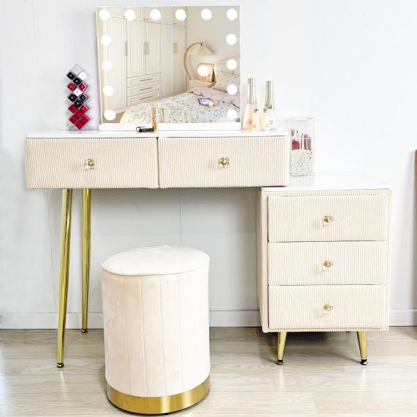 ドレッサー おしゃれ 値引キャンペーン 鏡台 化粧台 北欧風 お姫系 LED女優ミラー ベルベット ベロア スツールセット 寝室 化粧テーブル 化粧台 コスメ台収納