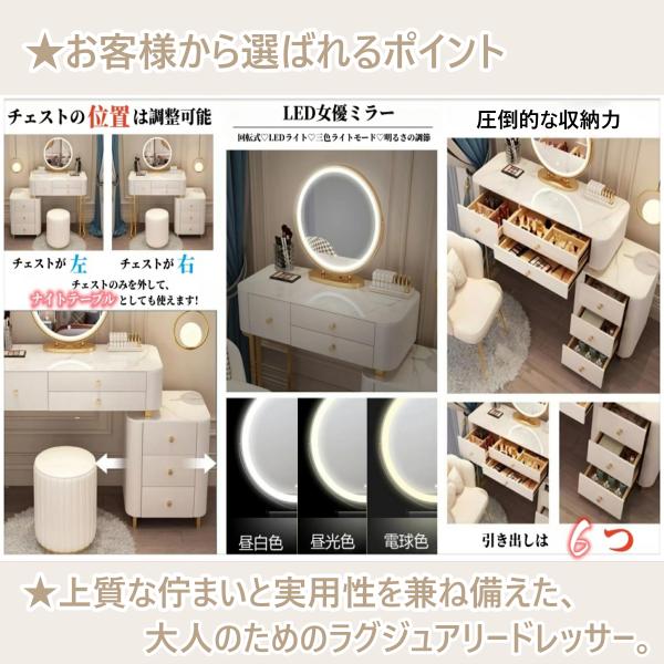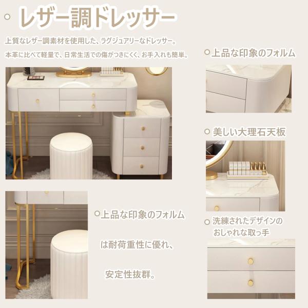 鏡台 化粧台 ドレッサー 女優ミラー おしゃれ クーポン実施中 テーブル 可愛い 北欧風 お姫系 LED レザー調 スツール 化粧テーブル コスメ台 収納 美容室204