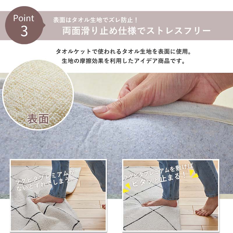 下敷きラグ アンダーラグ 極厚 30mm 洗える 3畳 170×230 ラグ 下敷き 滑り止め 防ダニ 防音 低ホル 床暖房対応 ホットカーペット対応 ラグピタプレミアム
