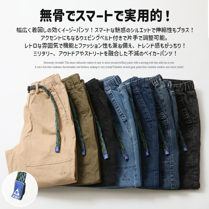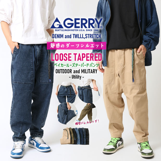 GERRY ジェリー 魅惑の曲線美 ルーズテーパード ストレッチベーカーワイドパンツ ワークパンツ メンズ クライミング チノパン デニムパンツ ズボン/爆買