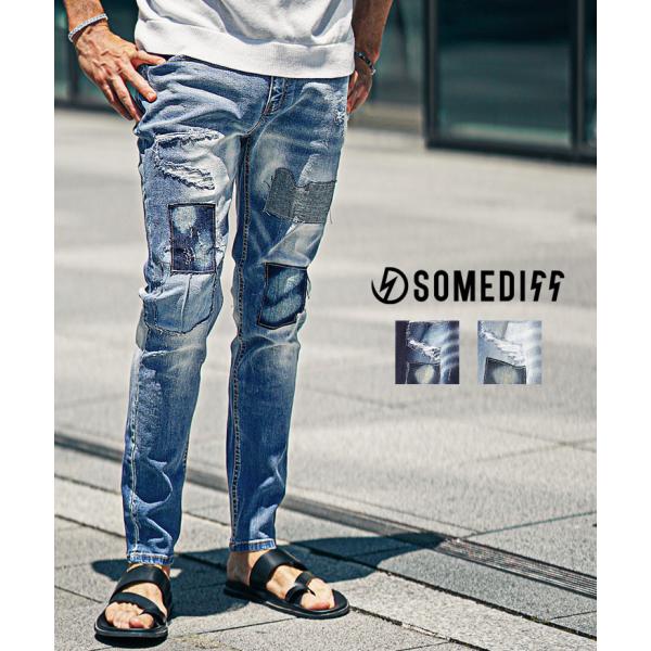 ジーパン メンズ デニムパンツ ジーンズ ダメージデニム スキニー デニム テーパードデニム パッチワーク スキニーパンツ ストレッチ 夏 夏服 joker ジョーカー