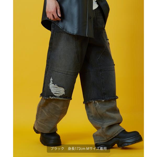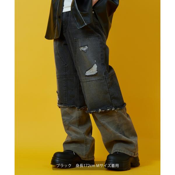 デニムパンツ メンズ レディース カモフラ ダブルニー Tシャツ アメカジ カジュアル スケーター ストリート 韓国ファッション ワークスタイル