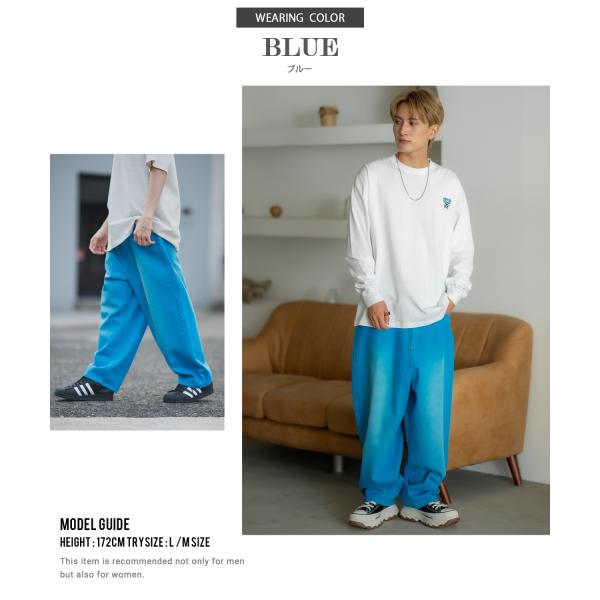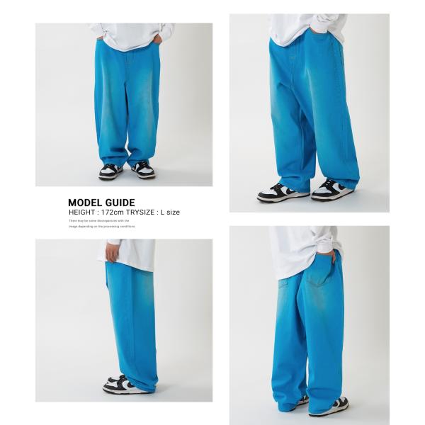 ワイドパンツ メンズ ワイドデニム カラーデニム ジーンズ バルーンシルエット コットン ストリート アメカジ カジュアル 韓国ファッション
