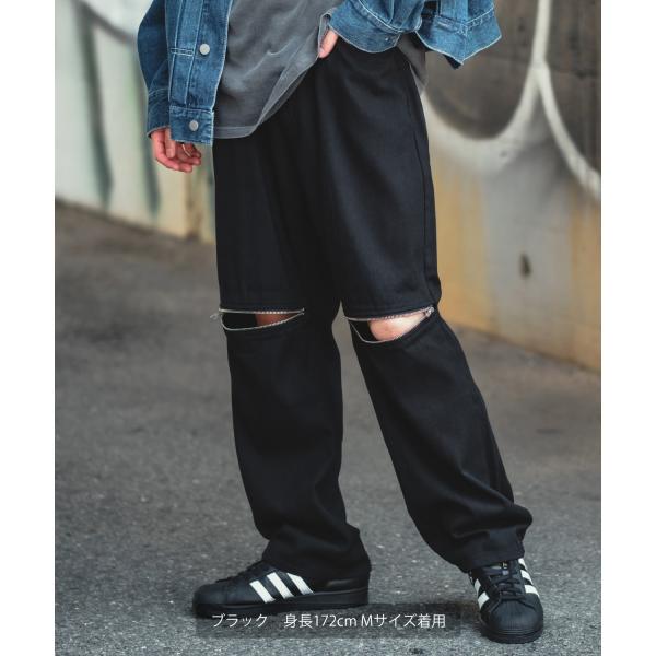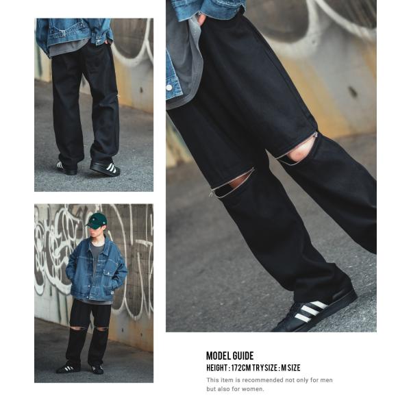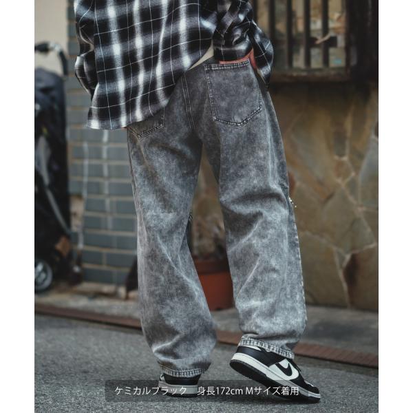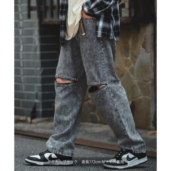 バギーパンツ メンズ ケミカルウォッシュ ZIP ファスナー デニムパンツ ツイルパンツ ワイドパンツ ジーンズ デザインパンツ 大きめ スケーター ストリート