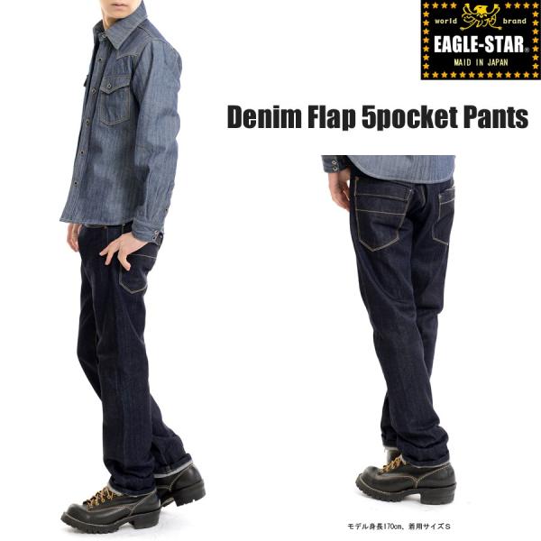 デニムフラップ5Pストレートパンツ リジッド メンズ メイドインジャパン 日本製 EAGLE STAR 備後 福山 デニム