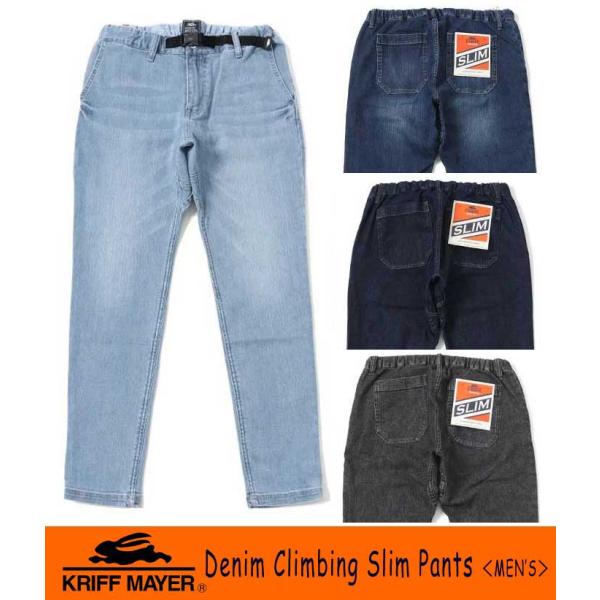 KRIFF MAYER クリフメイヤー デニムクライミングスリムパンツ メンズ ボトムス ロングパンツ ウエストゴム ベルト付 アウトドア 2334003