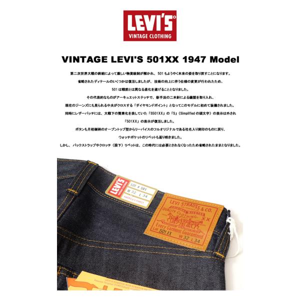 LEVI'S VINTAGE CLOTHING リーバイス ヴィンテージクロージング 501XX 1947年モデル 日本製 リジット 生デニム ストレート ジーンズ LVC 47501-0224