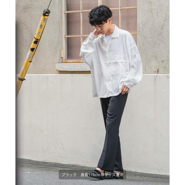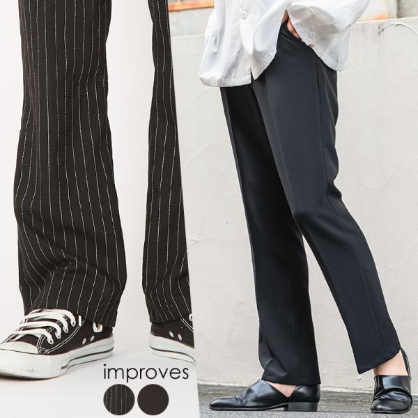 スラックス メンズ TR素材 スーツ生地 フレアパンツ 無地 ペンシルストライプ柄 ストライプパンツ シューカットパンツ トラウザーパンツ 黒 improves