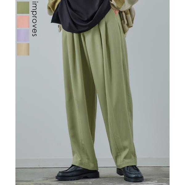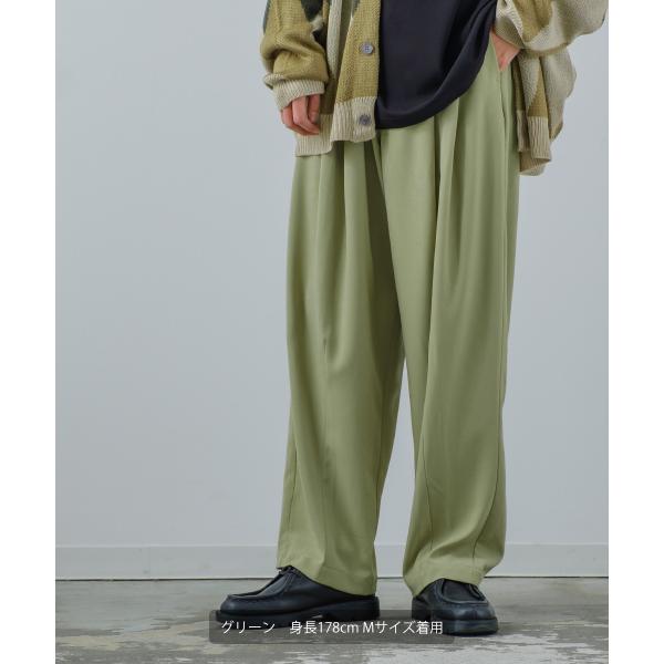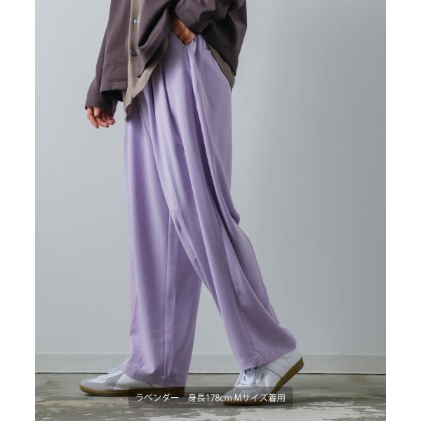 パステルカラー ワイド スラックスパンツ メンズ セットアップ対応 バルーンシルエット タック センタープレス イージーパンツ