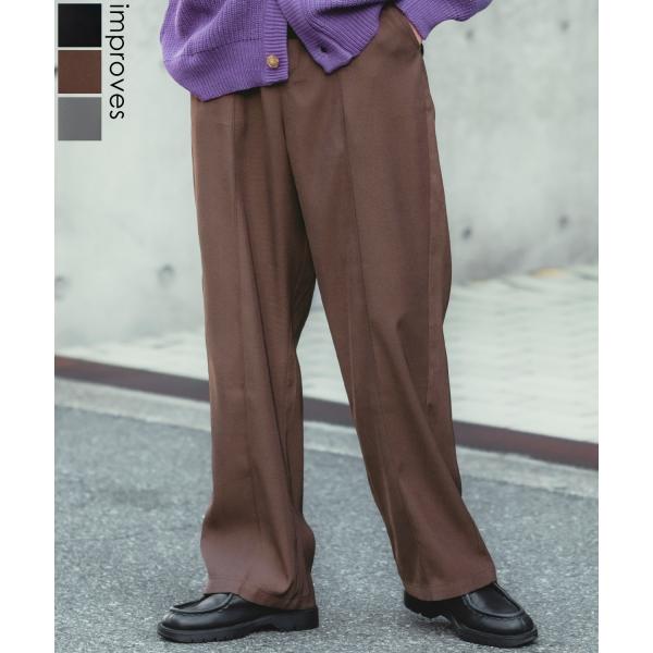 スラックス メンズ ワイドパンツ スーツ生地 ピンタック センタープレス イージーパンツ オーバーサイズ 大きめ キレイめ カジュアル モード 韓国ファッション