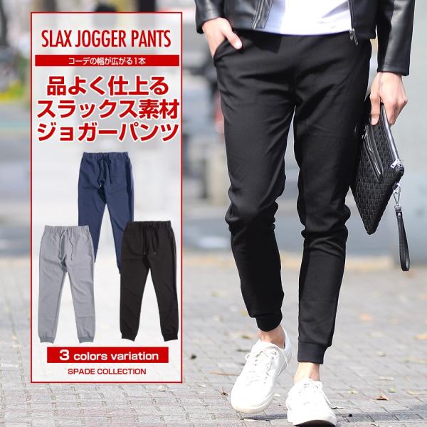 【メール便送料無料】ジョガーパンツ メンズ スラックス素材 スリム テーパード イージーパンツ 細身 ストレッチ 美脚 カジュアル 春 秋 冬 爆買
