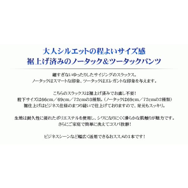 メンズスラックス 裾上げ済み ツータック 選べる股下サイズ ウォッシャブル 防シワ パンツ 裾上げ不要 ややゆとりサイズ