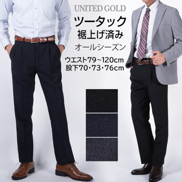 スラックス 裾上げ済み 秋冬 メンズ ビジネス パンツ ツータック 洗える 春 ゴルフ 79〜120cm 夏用 大きいサイズ対応 メール便