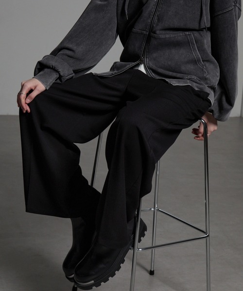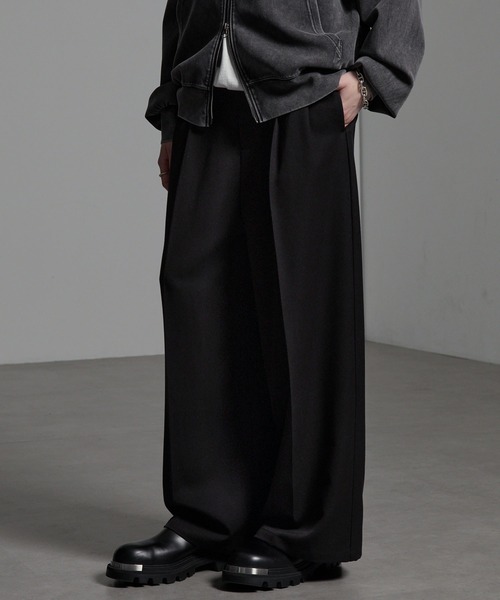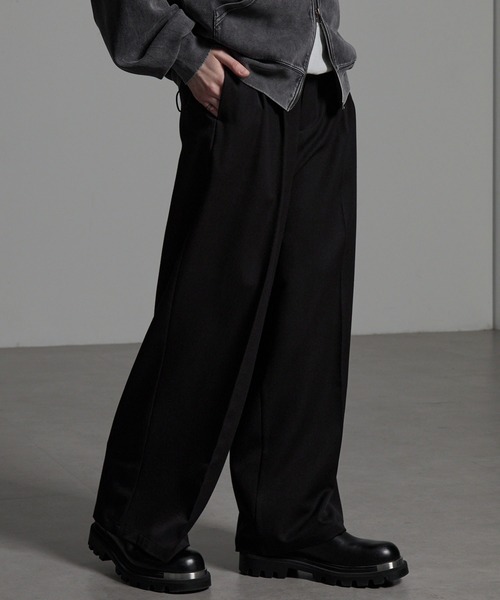 スラックス 「CIYOT-シヨウト-」TRストレッチ センタープレス 2タック ワイドストレートスラックスパンツ メンズ レディース