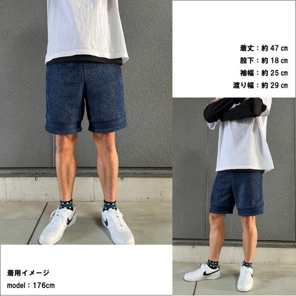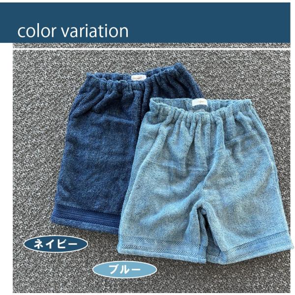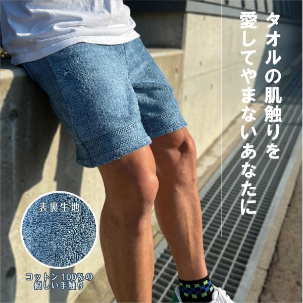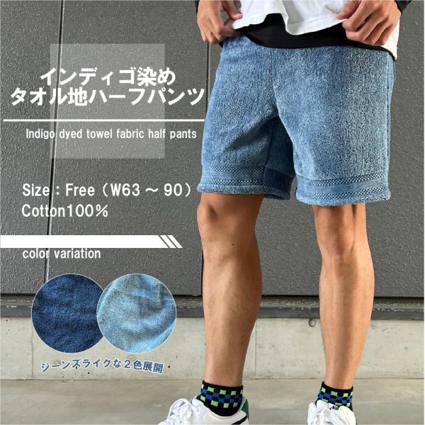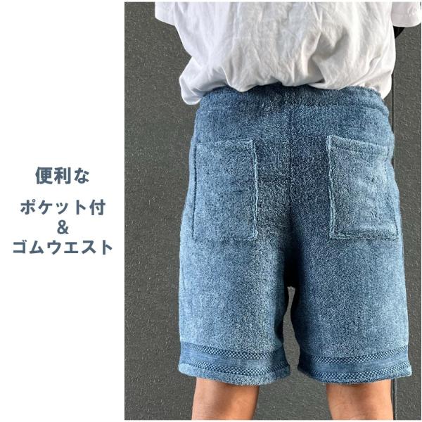 BAGNOS インディゴ染め タオル地 ハーフパンツ 膝上