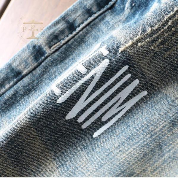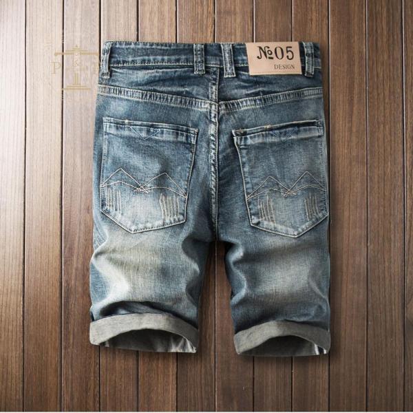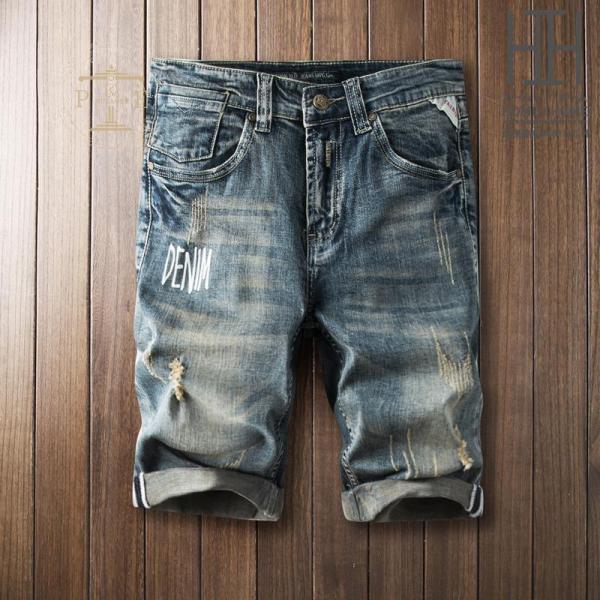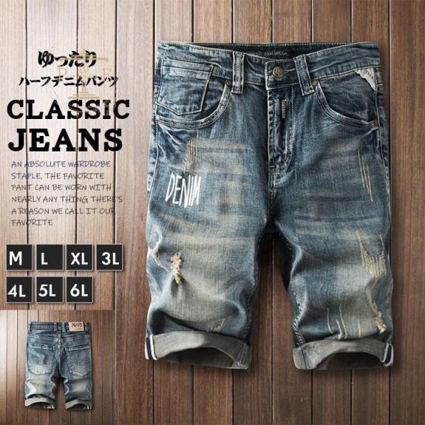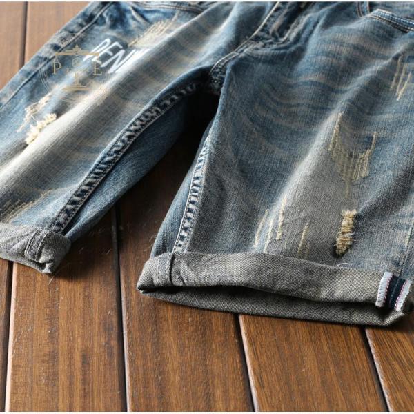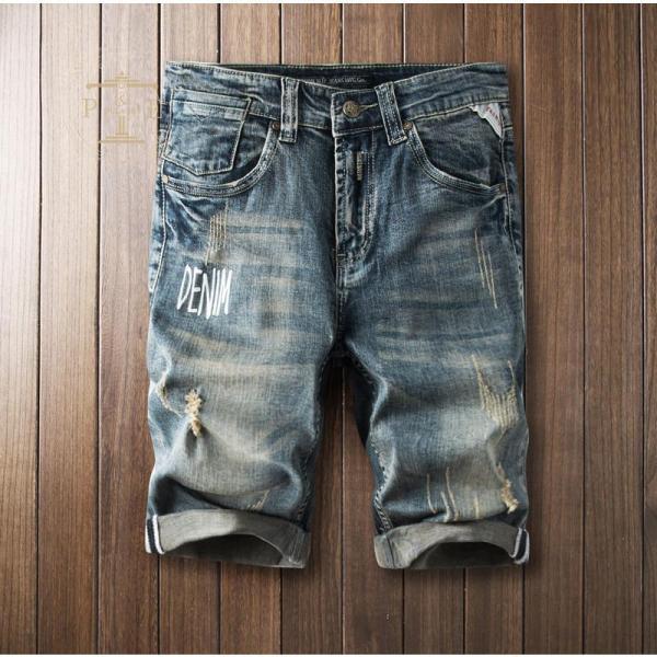 デニムシャツ ハーフパンツ メンズ 英文字 ストレッチ プリント 短パン ユーズド ダメージ 色落ち おしゃれ ハーフパンツ ジーンズ 夏