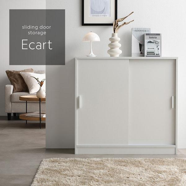 キャビネット サイドボード スリム 収納棚 カウンター下収納 約幅90×奥行21cm 薄型 引き戸 可動棚 リビングボード リビング収納 Ecart エカート 送料無料